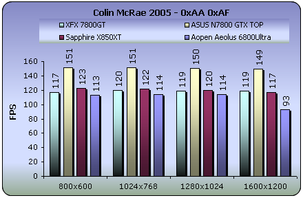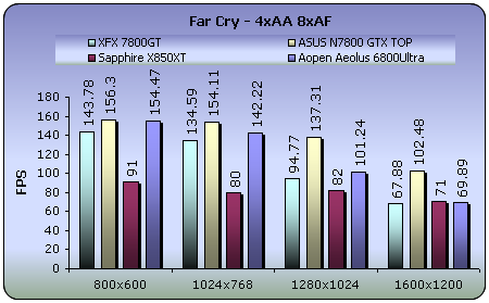 If you have the Animalising and Anisitropic Filtering disabled, the ASUS will provide the same performance, no matter what the resolution, while the X850XT is faster than the 7800GT and 6800Ultra.