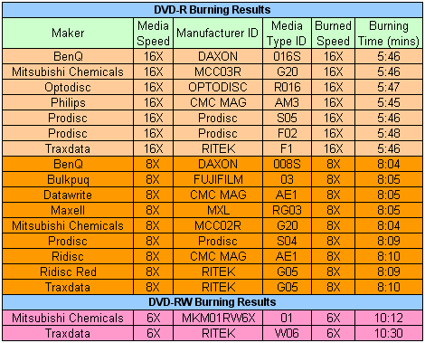 Now let's have a look at how the drive performs with DVD media. This time, a set of DVD media was used, both SL and DL.