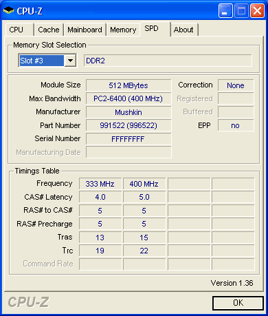 - Memory: Mushkin 2x512MB PC2-6400 (DDR2 800)