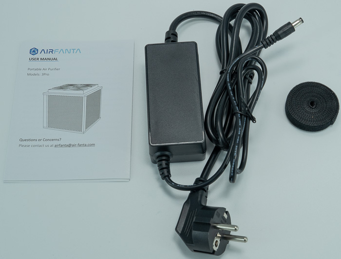 There is also a printed manual, a AC/DC adaptera and a velcro strap.