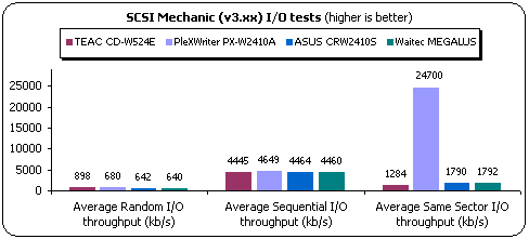 * SCSI Mechanic v3.0x: This was used to compare the drive's I/O performance against other various CDR-W drives (see charts). We used a pressed CD containing PlexTools v1.08 for all tests.