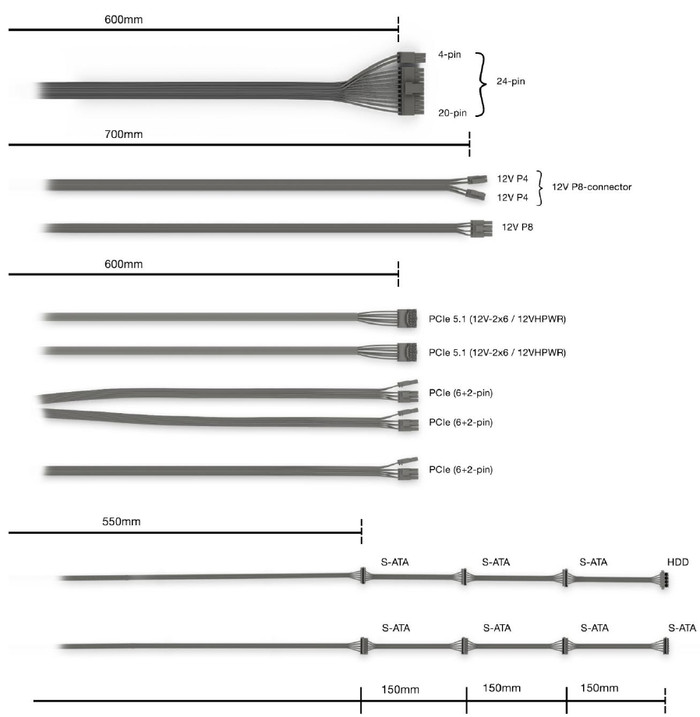 Power Zone 2 is an ATX 3.1 PSU and comes with native integration of one 12V-2x6 connector (Power Zone 2 1000W/850W/750W) or two 12V-2x6 connectors (Power Zone 2 1200W) for next-generation PCIe 5.1 graphics cards, as well as three PCIe 6+2-pin connectors for current-gen GPUs.
