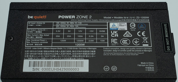 The retail package of the Power Zone 2 1200watt follows the usual design of power supplies from be quiet! All be quiet! power supplies come with 10 10-year warranty, and the 1200-watt variant can be found at €230, placing it in the middle of the market of 1200-watt power supplies. There are many more expensive models, and others are slightly cheaper.