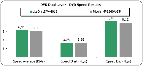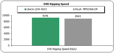 In the DVD reading tests we compare the LiteOn LDW-401S with another DVD+RW writer, the Ricoh MP5240A.