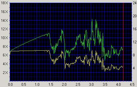 In general, a "perfect" disc should have a smooth reading curve, very low PIE/POE and zero (0) POF error rates. Most times however, even though a disc has very low PIE/POE error rates, the reading curve may not be smooth containing dropoffs. Due to the fact that we oversped the reading capabilities of the LiteON SOHD-167T, such drops are expected, especially near the outer area of the disc.
