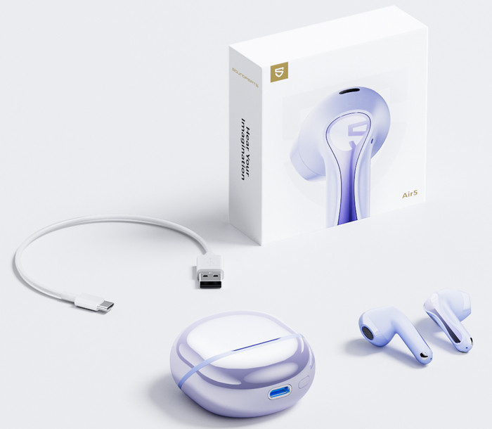 From a daily-use perspective, the packaging itself is less important than the case ergonomics: Air5 uses a compact case (56 × 51 × 26mm), at the front you will find the SoundPeats logo