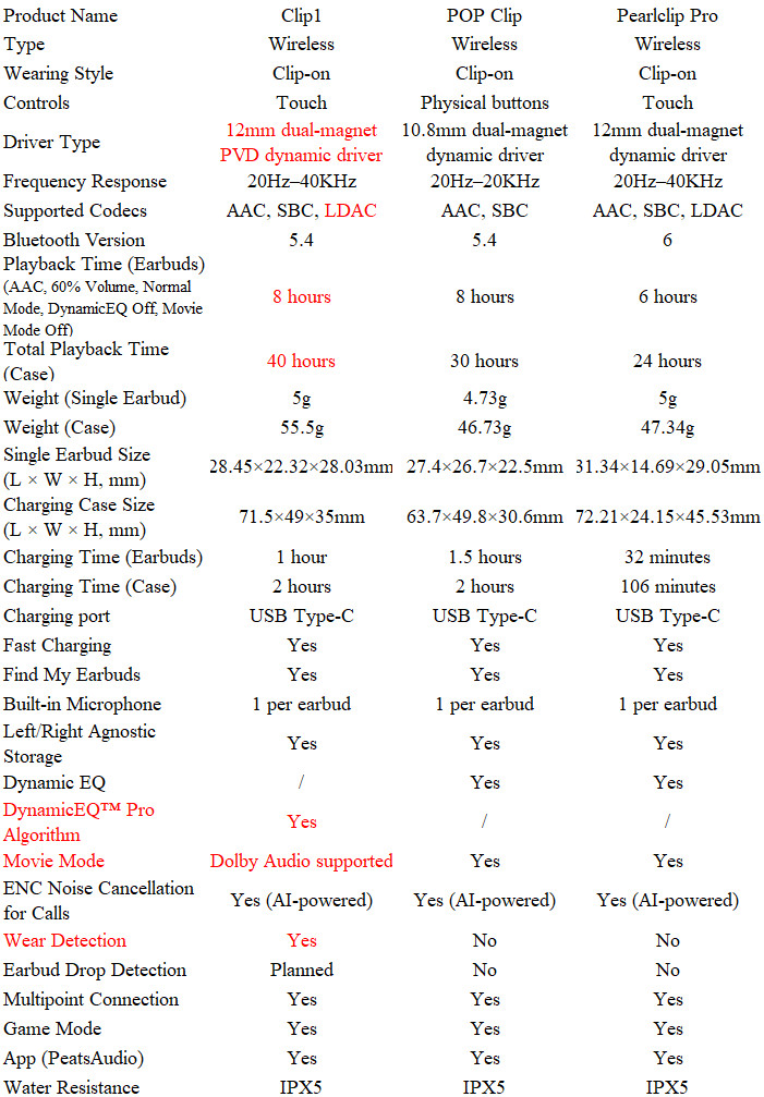 Below are the full specs of the SOUNDPEATS Clip1 product.