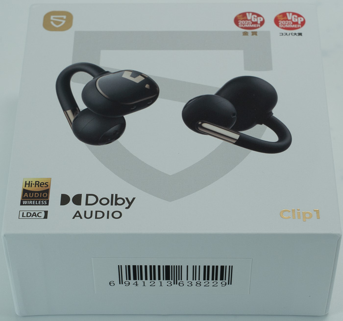The SOUNDPEATS Clip 1 retail box is small and has a similar design to other SOUNDPEATS products. It features the Dolby Audio and LDAC / Hi-Res Audio logos, indicating the special features of the product.
