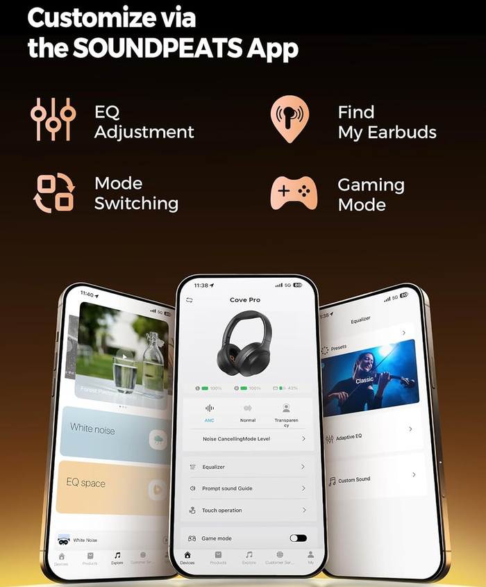 SoundPeats has a long history of producing quality products and apart from the earbuds also enters the headphone area with the Cove Pro series. The product aims at the sub-$70 wireless headphone market, delivering premium features typically found on headphones costing three to four times as much. The Cove Pro is designed to integrate seamlessly into daily routines across multiple use cases: commuting, focused work sessions, music listening, movies, and gaming. The manufacturer's philosophy emphasizes delivering effective hybrid ANC, balanced sound, low-latency performance, and extended battery life in a lightweight, travel-ready package at an accessible price point—specifically targeting users who want flagship functionality without flagship pricing.