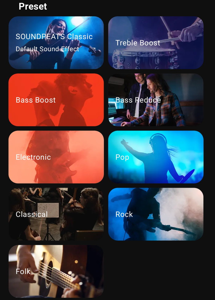 - Rock (aggressive midrange, strong bass)