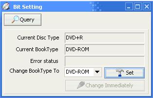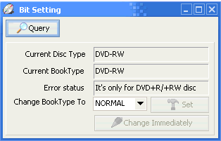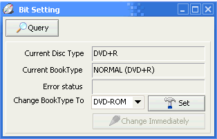 One click away before changing the booktype setting, with the default setting set to normal DVD+R for DVD+R media:
