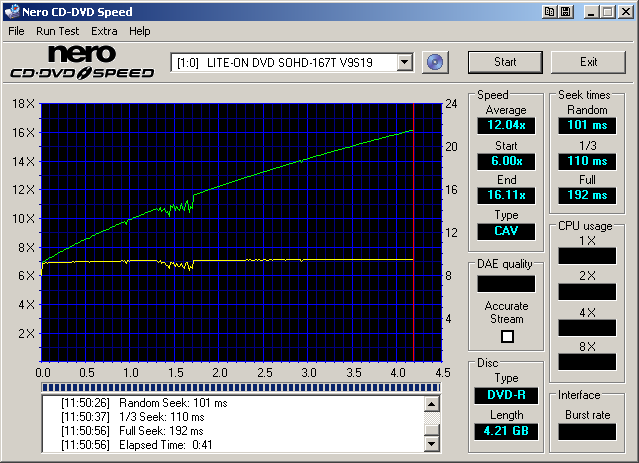 - The LiteON SOHD-167T with patched firmware being able to read DVD5 up to 16X CAV and DVD9 up to 10X CAV. For the transfer rate tests we used the latest Nero CDSpeed version.
