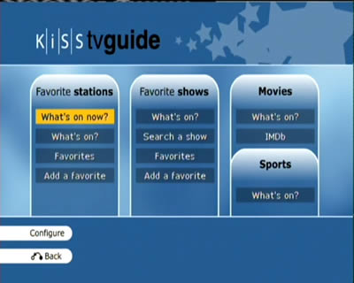 Since the player was already connected to the Internet, we decided to see what KISS offers to its buyers. We selected the KISS TV Guide function and shortly afterwards we were presented with this interesting screen: