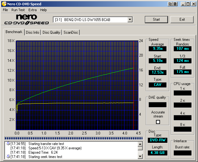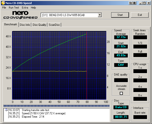DVD LS DW1655". From Nero's advanced options dialogue, we can
