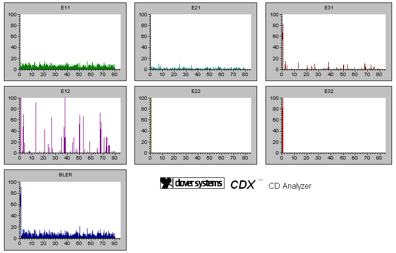 with Plextools and E22, E32 with some media in the Clover Systems test. At 48X