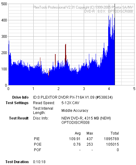 than the 280 acceptable limit. Ridisc media was readable with the Plextools