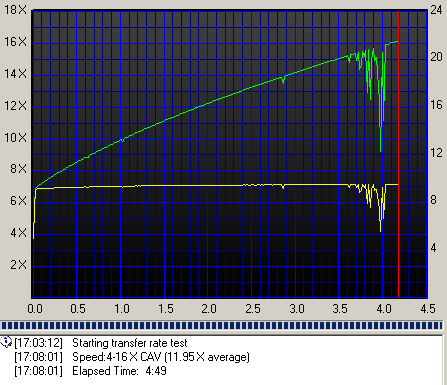 and DL media up to 12X. Write once media were read at a max speed of 16X and