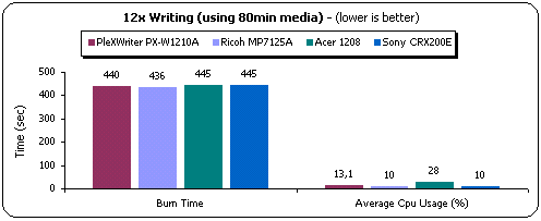 We used Nero 5.5.1.8 for writing CDs at the maximum RW speed for all the tested