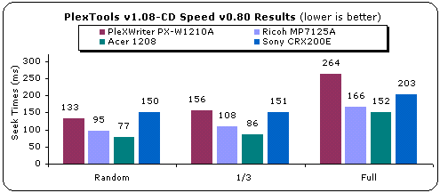 drives. The Sony CRX200E/Acer CRW1208 support only 8x and the rest drives 10x: