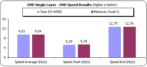 Teac DV-W50D and Memorex Dual X-1 are having almost the same performance,