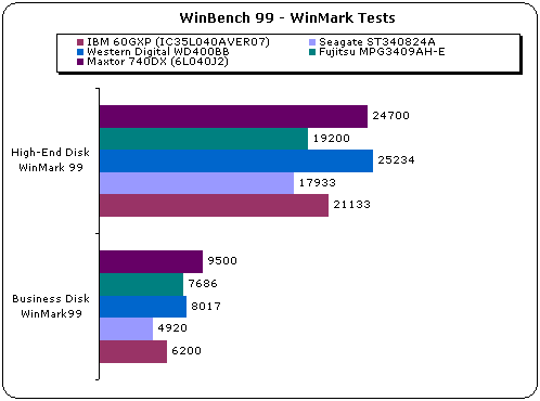 Under WinBench 99 v0.2, each drive has a different behaviour.