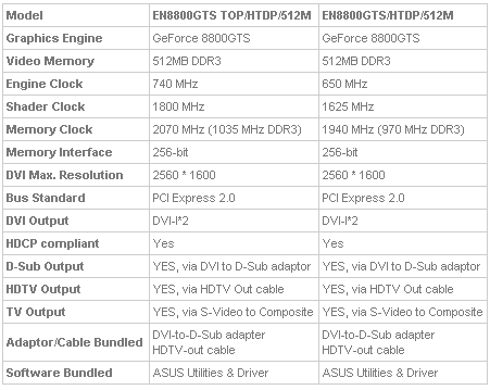 Hot on the heels of launching the overclocking version of the NVIDIA GeForce 8800GT GPU graphics cards, Asus has today released the overclocking version of the latest NVIDIA GeForce 8800GTS GPU; with the EN8800GTS TOP/HTDP/512M and EN8800GTS/HTDP/512M graphics cards
