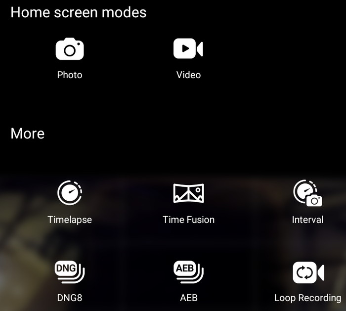 For shooting modes Photo, Interval, AEB, and TimeFusion, you may select the photo
