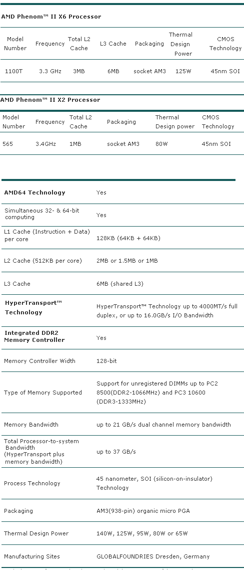 The AMD Phenom II X6 1100T is AMD's new desktop flagship processor, offering high-end features like unlocked clock multipliers, Turbo CORE technology and six-core performance (3.3GHz, 3MB L2 cache, 6Mb L3 cache, AM3 socket).