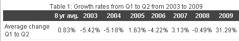 Traditionally, Q1 to Q2 sales decline due to summer vacations and preparation for the fall. This year preparation seems to have gotten off to an early start.