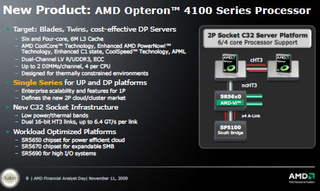 AMD officially announced its 4000 series Opteron processors designed to appeal to a new market segment for power-efficient and low-cost servers. The company also confirmed it is bringing forward the launch of its 6000 series to Q1 of 2010, earlier than originally planned.