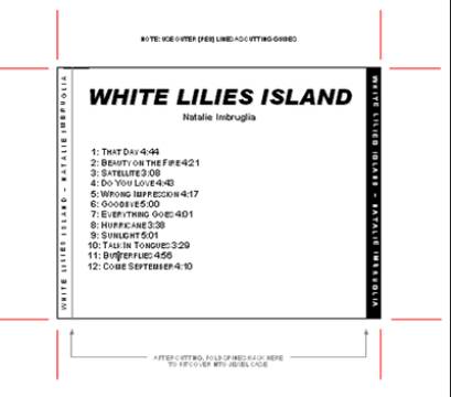 We chose the template “CD Jewel case” and started working on our label. As an example, we are created a label for Natalie Imbruglia’s “White Lilies Island” album.