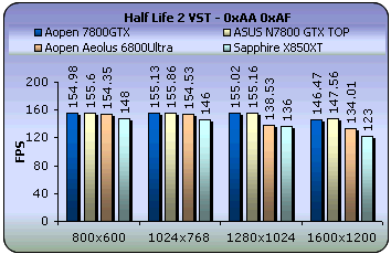To measure performance we used the Video Stress Test(VST) that is available in the CounterStrike:Source beta available through Steam. We set all the details to the highest level and each time changed the resolution from 800x600 up to 1600x1200.