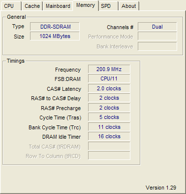 Memory: Apacer Real500 PC4000 (2x512MB)