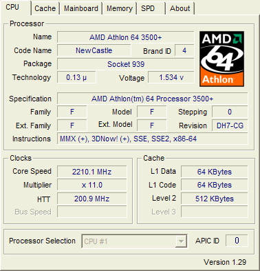 CPU: AMD Athlon 64 3500+ CPU (Newcastle)