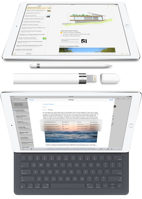 Apple will also launch seperately a new Smart Keyboard, which is offering a full-sized keyboard in a thin design. The Smart Keyboard attaches to iPad Pro's Smart Connector port, eliminating the need for a separate battery, on/off switch or Bluetooth pairing. It is covered in custom woven fabric and features keys that provide the stability of standard keyboards, but is also easily foldable and can transform into a Smart Cover. The Smart Keyboard also works with new QuickType features in iOS 9 to make typing even faster and easier.