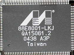 The Marvell Yukon 32-bit 88E8001 offers an additional network connectivity solution, the Yukon Gigabit Ethernet controller with Intergrated PHY. It also provides an advanced cable diagnostics function, (Virtual Cable Tester technology) that will enable IT managers to easily pinpoint the location of cable problems.