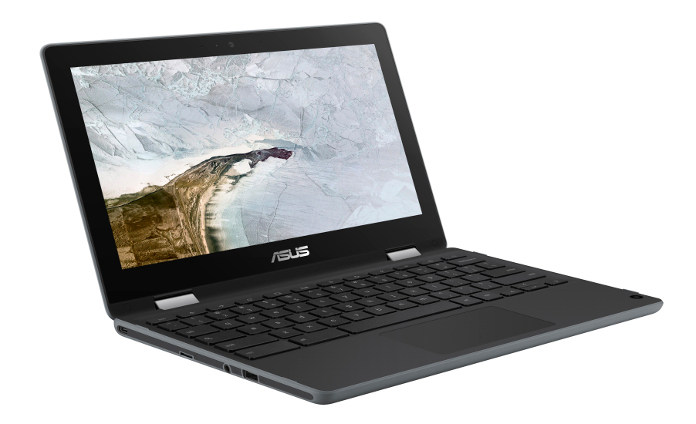The ASUS Chromebook Flip C214 has a convertible design that transforms between a tablet and a laptop.