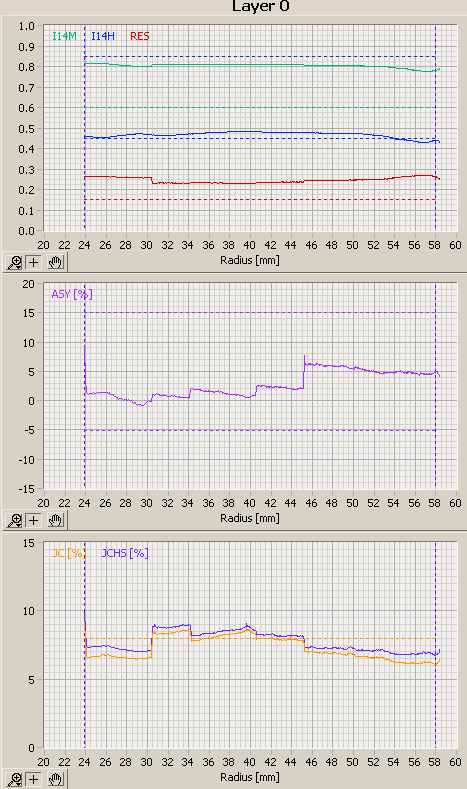 Relatively low final writing speed of 4X but ends up with a pretty positive feedback from the Datarius scanning engine. No digital errors at all here. Good writing.
