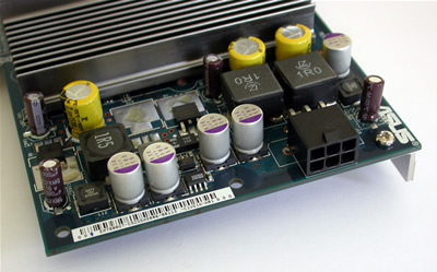 On the far end of the card, along with the capacitors and transistors, is the standard PCI-E power connector, which requires at least a 400-Watt power supply.