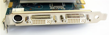 The card is equipped with two DVI-I connectors and a VIVO/HDTV-out connector.
