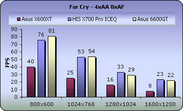 However, turning on AA and setting AF to 8x, the situation changes and the 6600GT loses its lead.