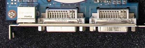 | Dual DVI-I output and a single D-sub found on the card's rear |