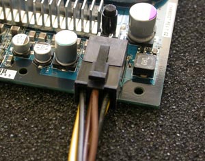 On the picture above you can clearly spot the SLI connector. For more information about SLI, you should read our Asus A8V SLI Deluxe article.