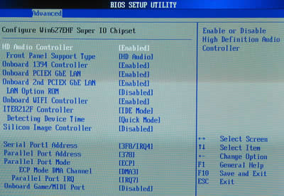 At the advanced chipset features tab of the P5AD2-E BIOS, you are presented with a list of on-board features like the WIFI controller or the Silicon Image controller for the Serial ATA raid. Disabling any unwanted features can reduce the boot time and prevent the operating system from detecting unused devices.