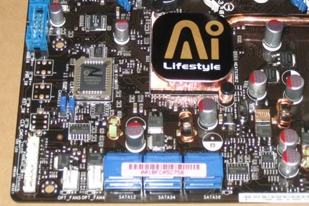 Moving to the southbridge, we can see the passive heatsink and the 6x SATA 2 connectors, well organized, not crowded: