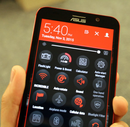 ZenUI has been revamped with a new look. To go along with the red trim of the Special Edition, unique icons, wallpaper, and notification menu was created to complete the package. Each icon is outlined in red against a 3D-looking black disk and the application folders mimic the style.
