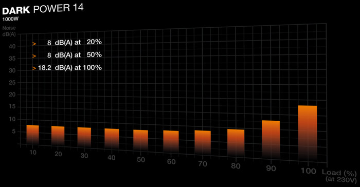 Dark Power 14 is certified with 80 PLUS Titanium and Cybenetics Titanium for an energy efficiency rating of up to 95.57%. This provides lots of benefits for a high-end system, including less power consumption and an overall cooler and quieter operation.