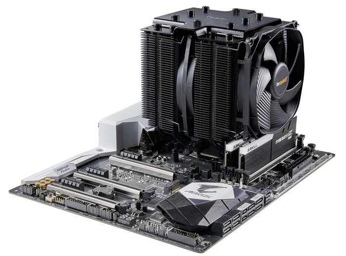 Dark Rock Pro 4 contains two aluminum heat sinks. The cutouts provided enhance its RAM compatibility. Two fans are pre-installed. It is also possible to add another 120mm fan for even better cooling.