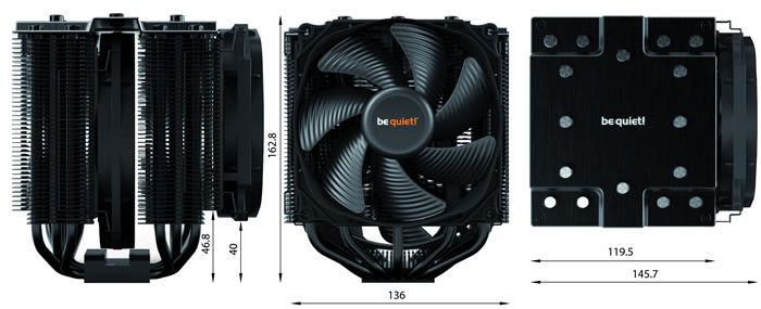 The top includes the be quiet! logo, while the CPU cooler is total black, nice!