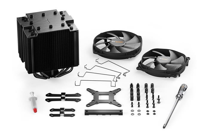The be quiet! Dark Rock Pro 4 is a BIG cooler. The retail box is also big and securely includes the CPU cooler and its accessories. The product costs €86.90 / £80.99 / $89.90 MSRP (3 years warranty), but you can find it around 75 euro at retail market. The product supports many Intel (1150 / 1151 / 1155 / 1156 / 1200 / 1366 / 2011(-3) Square ILM / 2066) and AMD (AM2(+) / AM3(+) / AM4 / FM1 / FM2(+)) sockets. It clearly aims for enthusiast/overlockers who wish nothing but the best from an air cooler.
